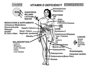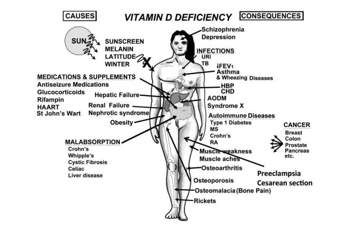 Недостатъчният прием на витамин Д може да доведе до редица здравословни проблеми, включително: